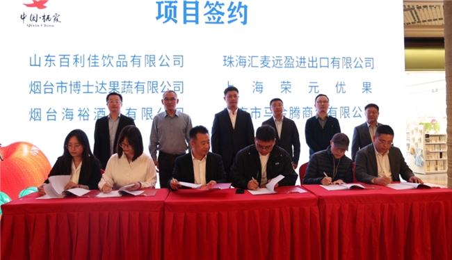 通过此次推介活动,“栖霞苹果”区域公用品牌得到广泛认可,栖霞苹果的独特品质和优势得到充分展示。签约成果丰硕,成为活动的一大亮点。山东百利佳饮品签订NFC果汁万吨生产项目合同、烟台海裕酒业有限公司签订果汁饮料加工电商一体化项目、烟台市博士达果蔬有限公司与上海荣元优果签订富硒苹果采购合同、山东百利好食品与Costco签定产品采购合同、好品山东优特农品上海推广中心与3家栖霞企业达成采购合作等,现场共签订合同、协议等11项,涵盖鲜果、深加工产品、电商合作等多个领域,标志着栖霞苹果与长三角市场的合作正式迈入新阶段。
